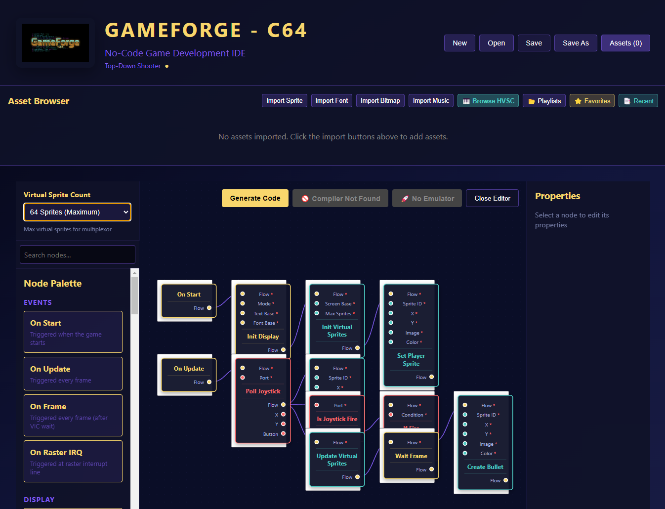 🎹 GameForge‑64 – C64 Visual Scripting + SID Workbench