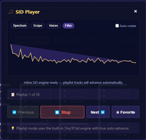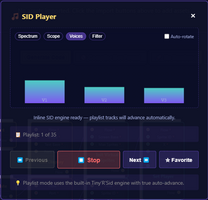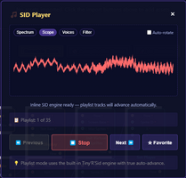 - Playlists/Favorites/Recents got real data structures plus inline controls. You can star tracks, queue 35+ SID bangers, and their state survives restarts.