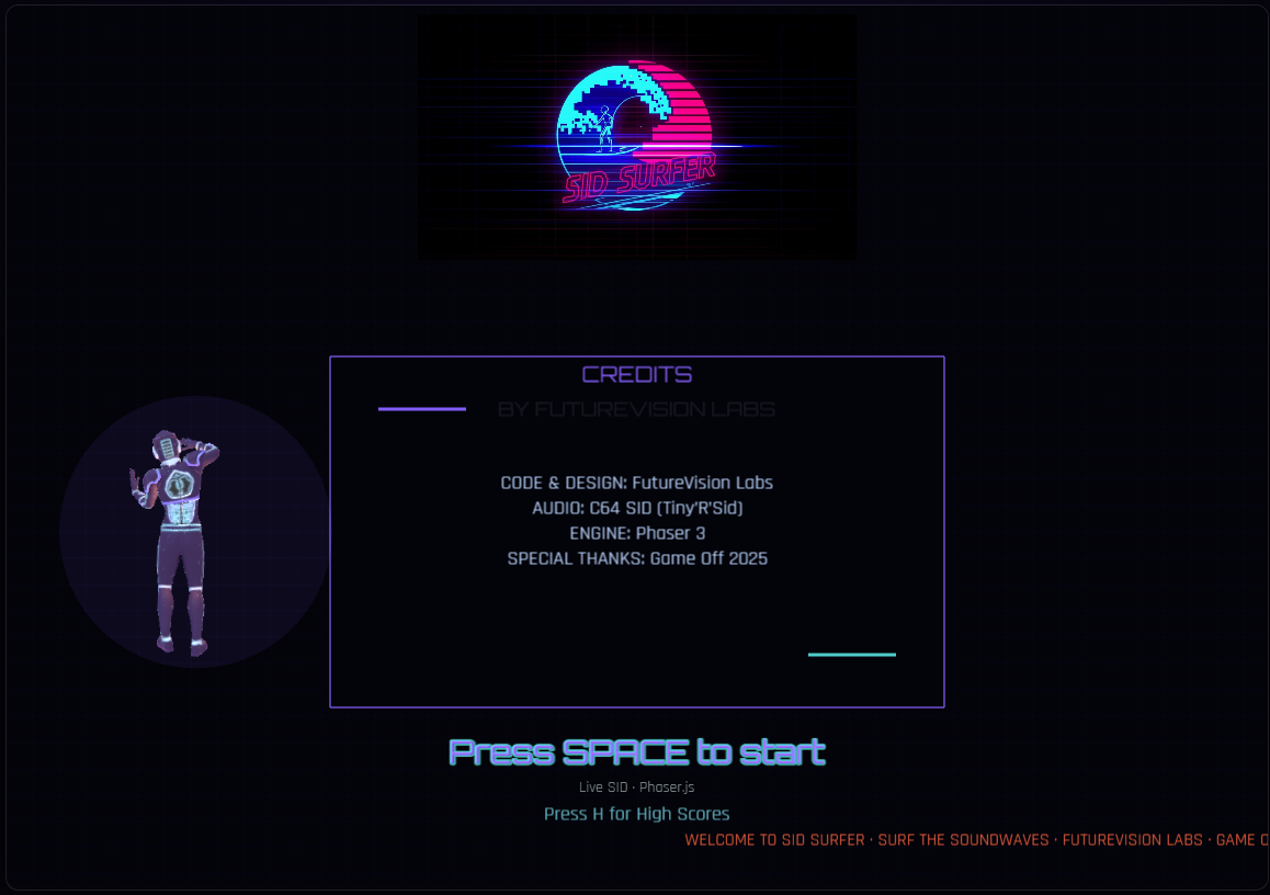 SID Surfer is a rhythm rail-shooter that combines the iconic sounds of the Commodore 64 with fast-paced wave-riding action! Surf through neon sine waves while legendary SID composers provide the soundtrack to your journey.