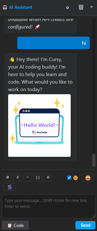 - GIF Reactions - Cursy reacts to your code with appropriate GIFs