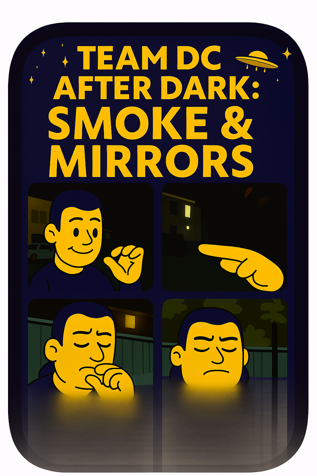 [Shows “TEAM DC AFTER DARK: SMOKE & MIRRORS” badge]