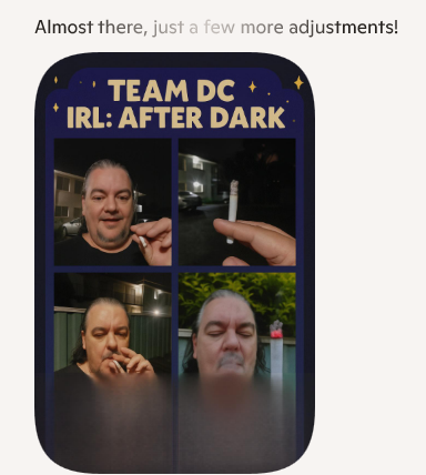 [Shows “TEAM DC IRL: AFTER DARK” collage]