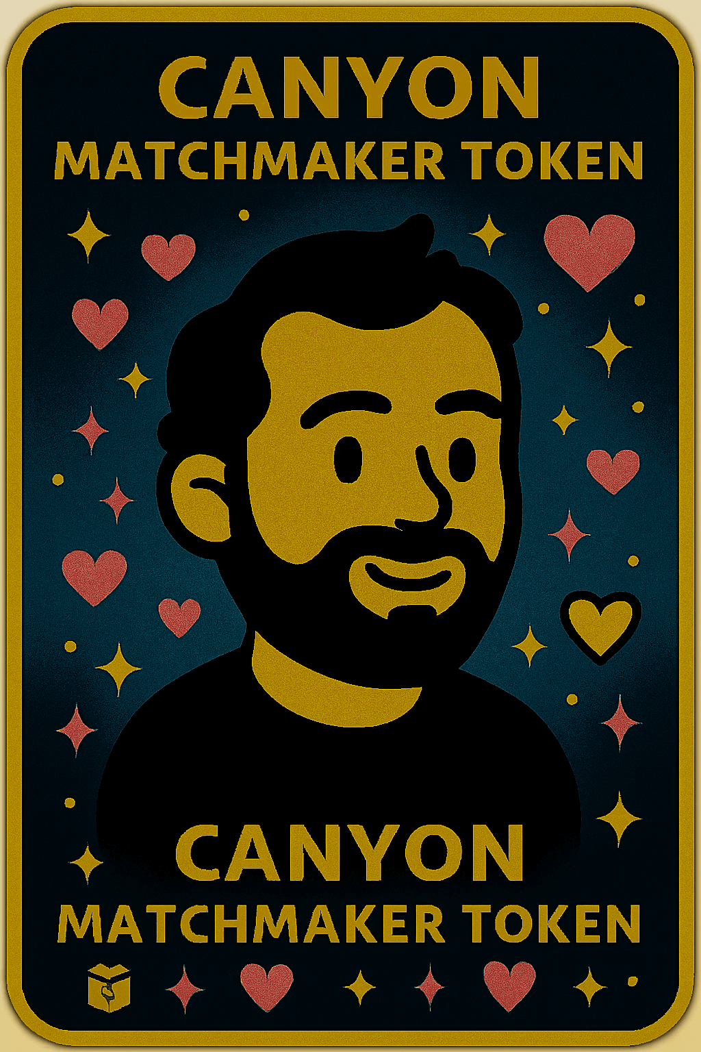 Look! It has Canyon’s portrait, hearts, stars, and “CANYON MATCHMAKER TOKEN” at the top and bottom!