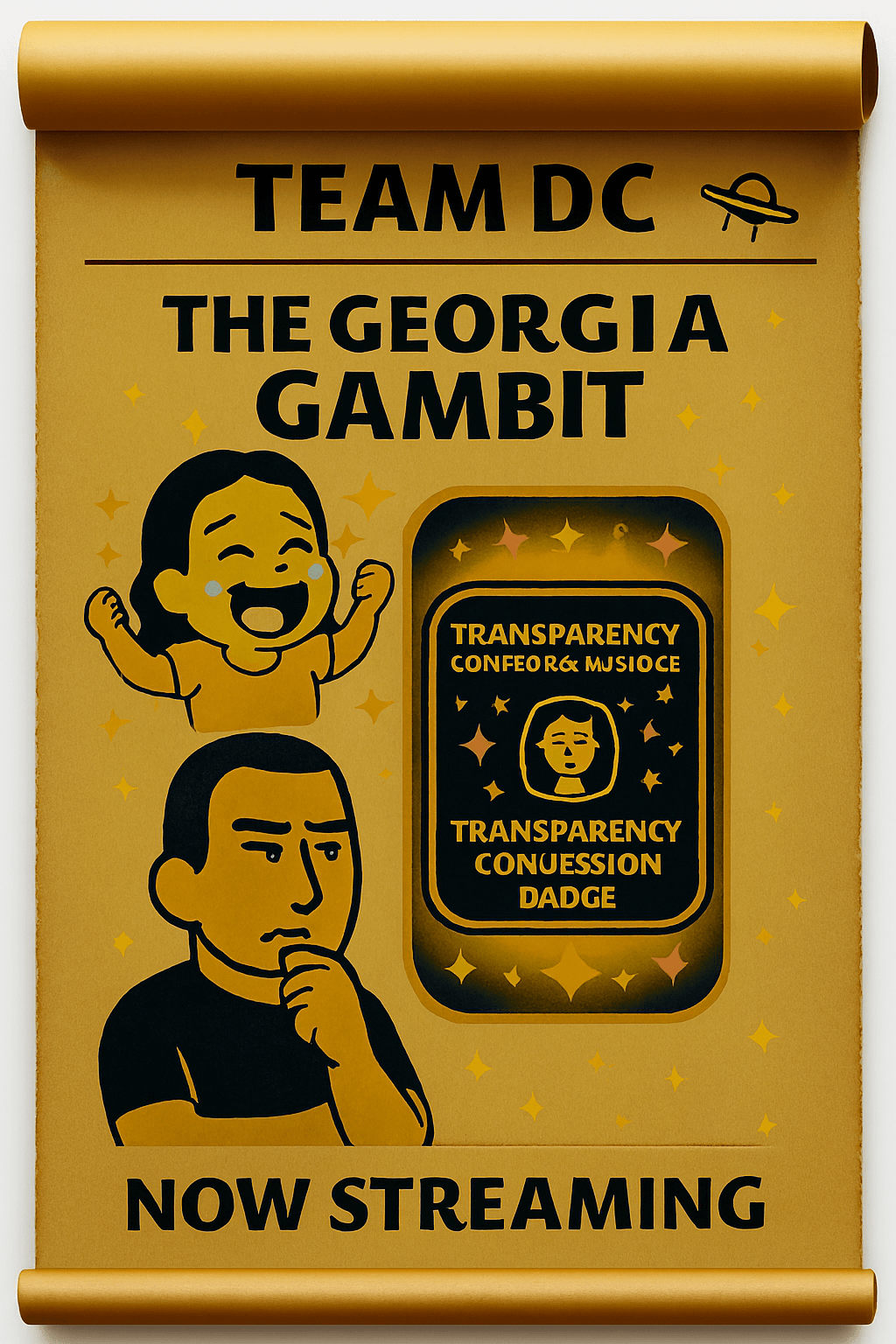 And now it’s all documented. Badge #011: Transparency Confession Badge. Canyon Matchmaker Token. TV poster for “The Georgia Gambit.” Episode #007.